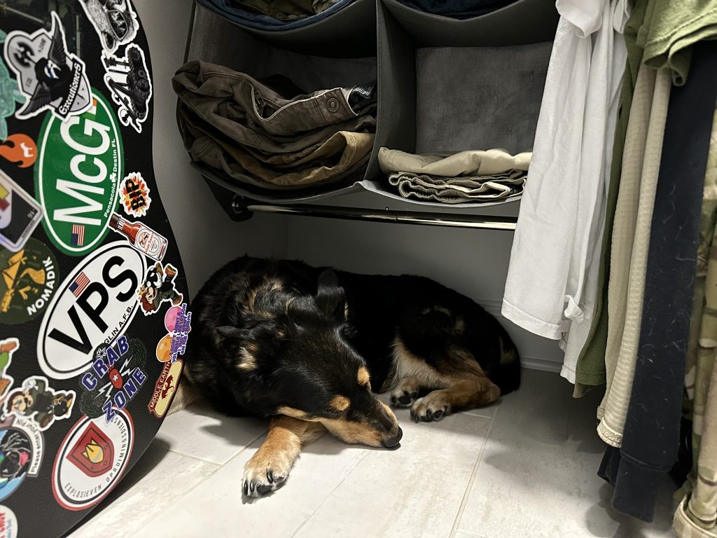 Rescue dogs with unknown pasts often need extra patience. Closets can feel like their sanctuary.